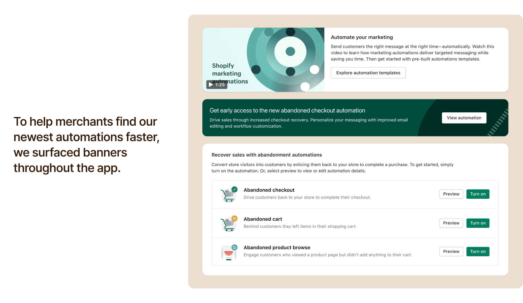 Evolving Shopify’s automations into a multi-channel platform that helps merchants accelerate their marketing.