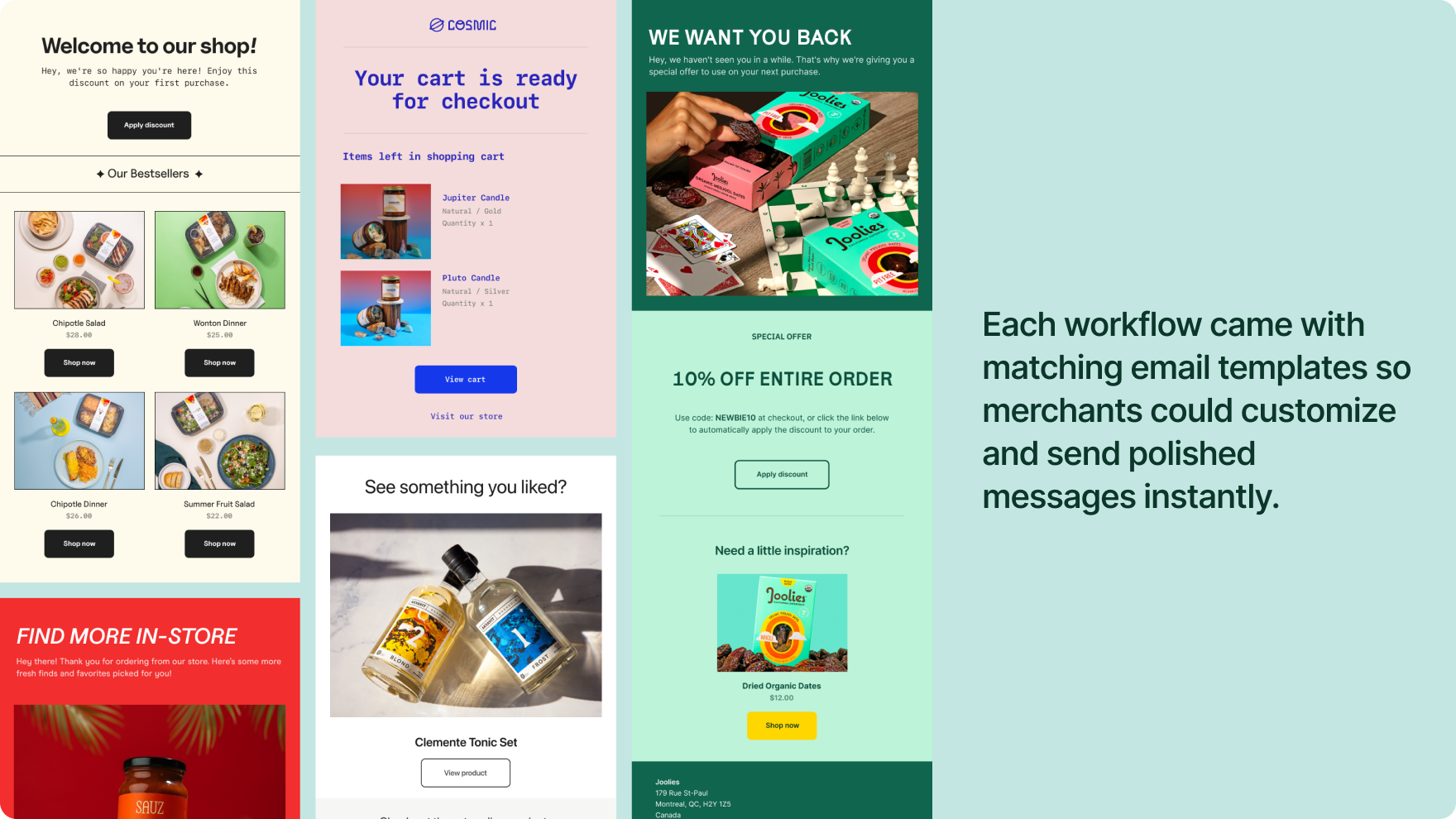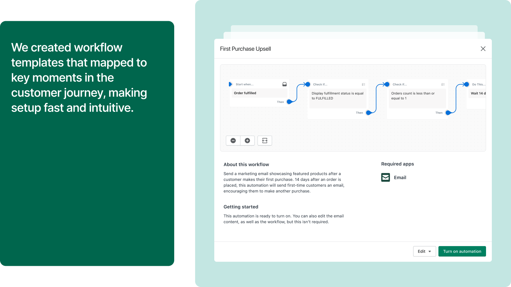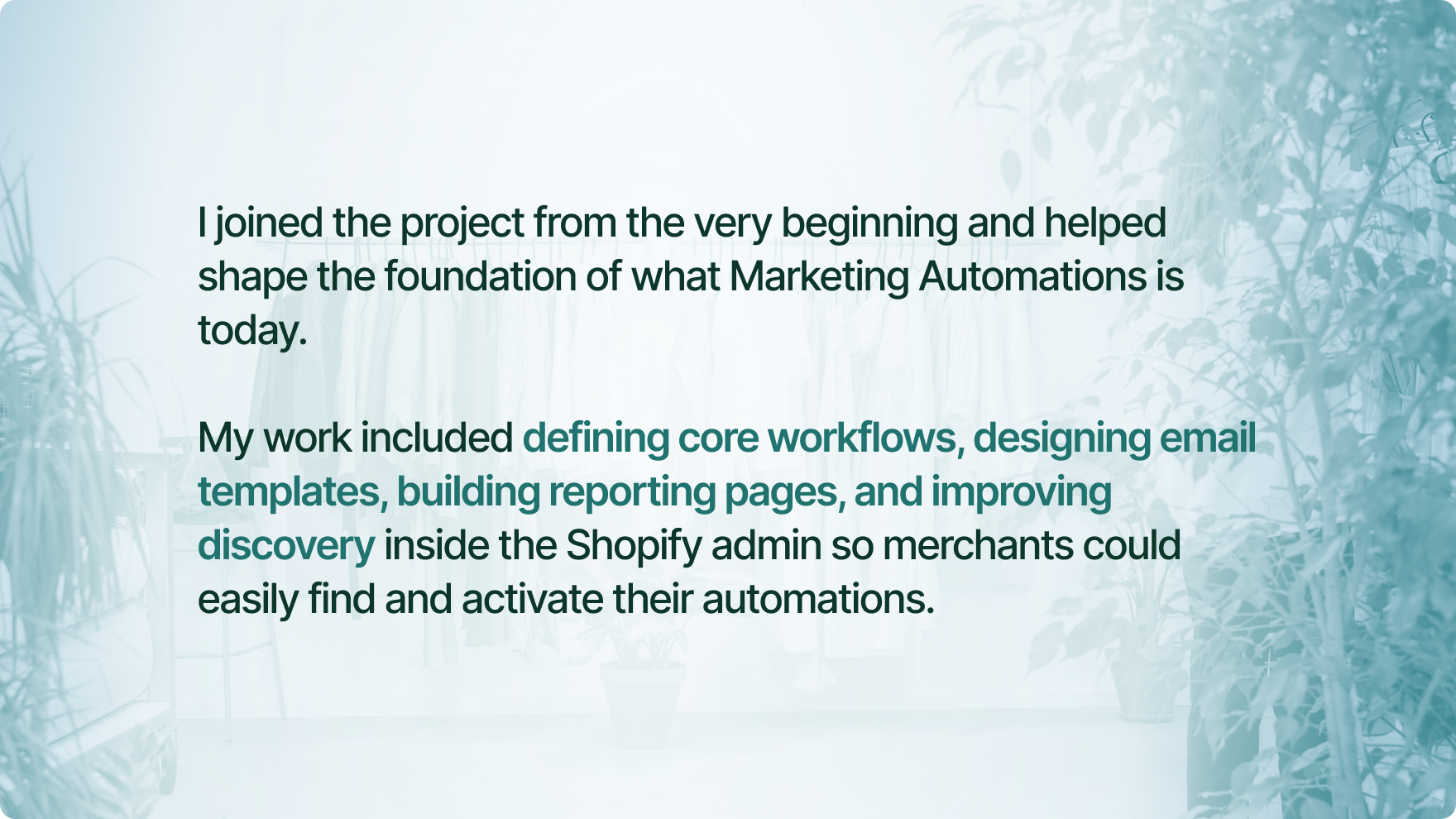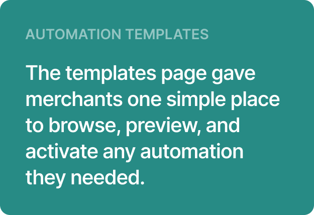 This case study highlights how we defined core workflows and email templates and improved reporting and discovery to make automations easier for merchants to use.